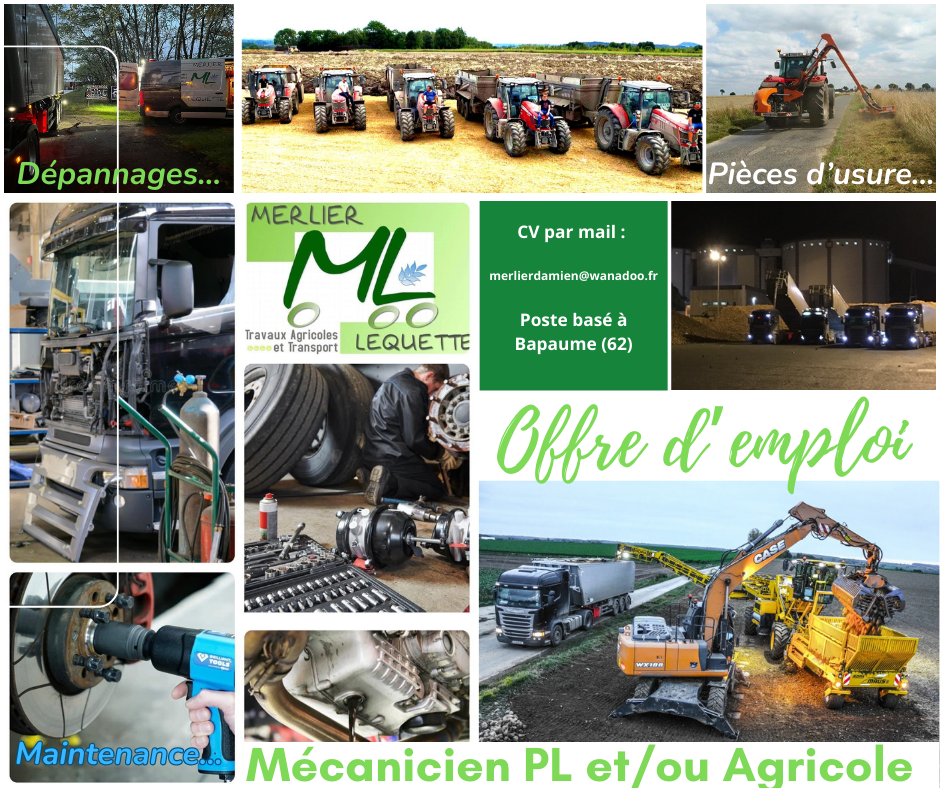 E.T.A. (Entreprise de Travaux Agricoles et Forestiers) et de Transports Routiers située à côté de Bapaume (62) recherche :